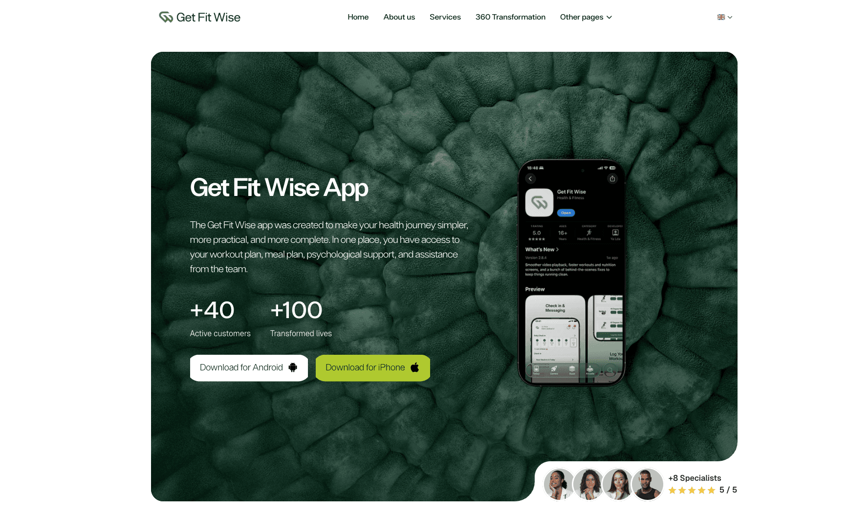 Get Fit Wise is a personalized health and wellness platform that combines training, nutrition, and psychological support in one guided journey. Through its mobile app and specialist team, members get structured plans, weekly follow-up, and practical tools to build sustainable results.